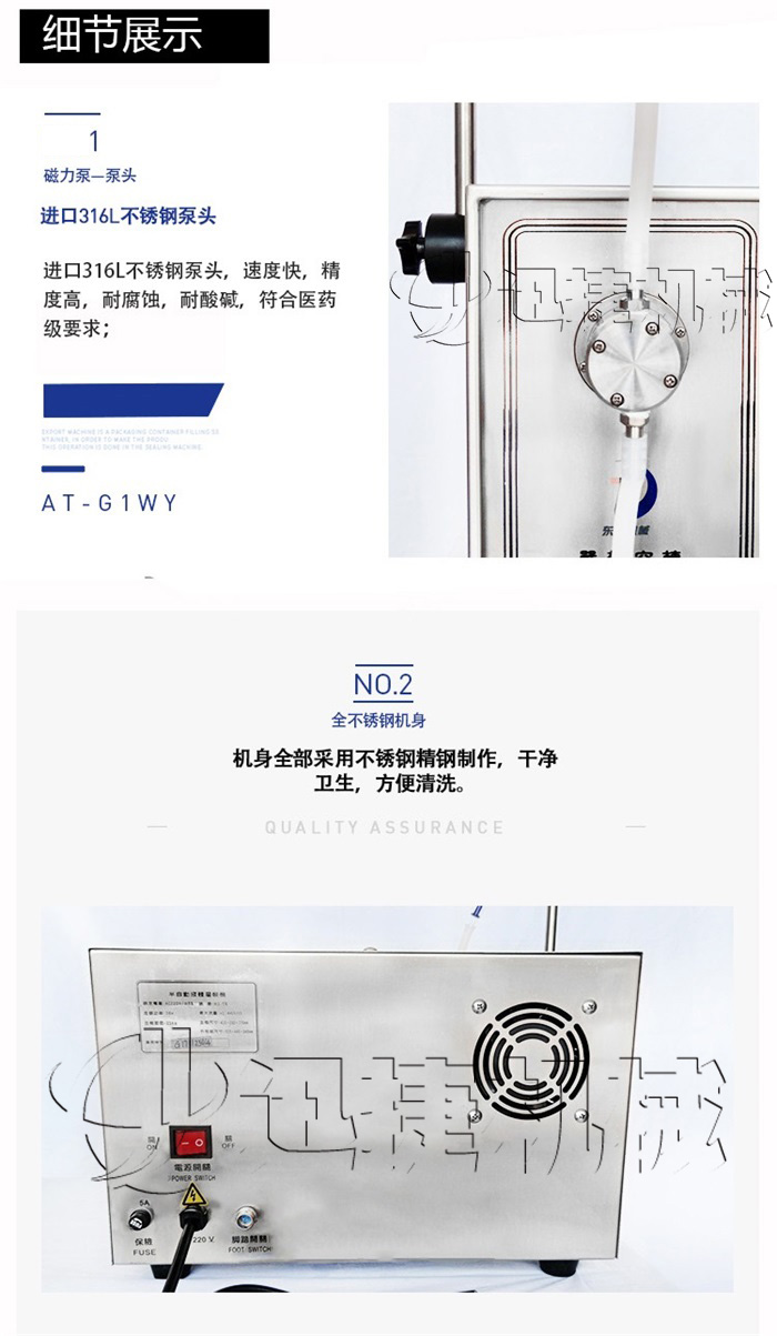 A、磁力泵液体灌装机采用世界工厂变频调速器,配进口高精度多圈电位器及可锁表盘,使流量调节稳定准确,误差负偏小于0.5%,正偏小于1.5%;