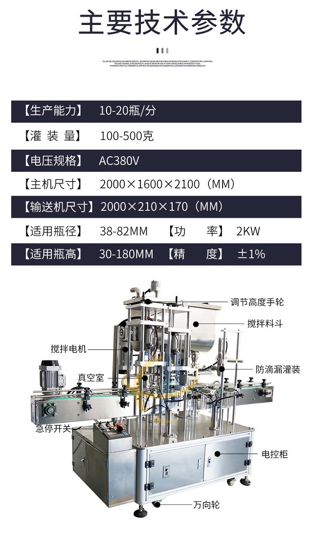 现在的生活节奏也比较快,牛肉酱也比较方便购买,网上、超市都有的售卖,所以许多的商家开始与全自动牛肉酱灌装机厂家直销进行合作,全自动牛肉酱灌装机您知道如何选购吗?这时候在灌装颗粒比较大或者比较粘稠或比较干的酱料的时候,我们全自动牛肉酱灌装机采用柱塞式进行计量,保证定量准确可靠,可用于多种瓶型,换瓶型只需要更换一套模具,模具更换的时间约为15分钟左右,为了迎合社会发展的主题,全自动牛肉酱灌装机效率高,帮助了很多企业解决了人工难题也更受消费者欢迎。